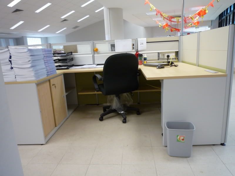 As a result of having more staffrooms, the work stations are lots more spacious. Instead of just one desk space, each station is now ‘L’-shaped. No overhead cabinets, but with a lockable sliding door cabinet, and shelf space under the table-top along the long of the ‘L’. I think that was a brilliant idea as every teacher in every school I’ve been to ended up buying those stand-alone cabinets, laying them on their sides under the table to fully utilize the space there anyway.
